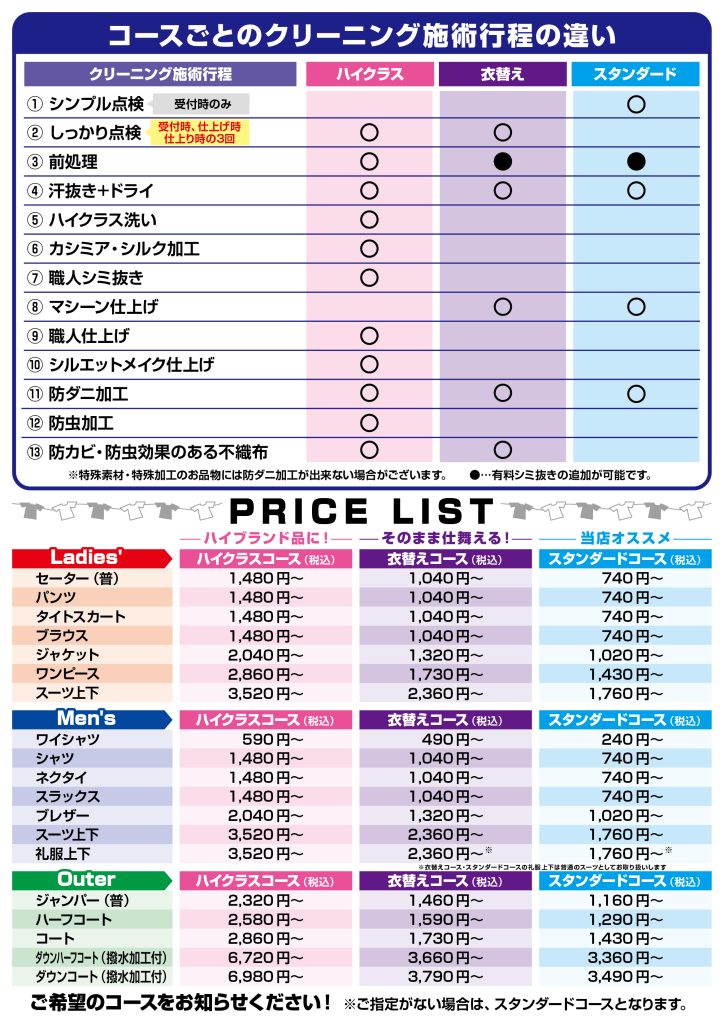 ハイクラス・衣替えコース・スタンダードコースの全てのコースにご利用いただけます