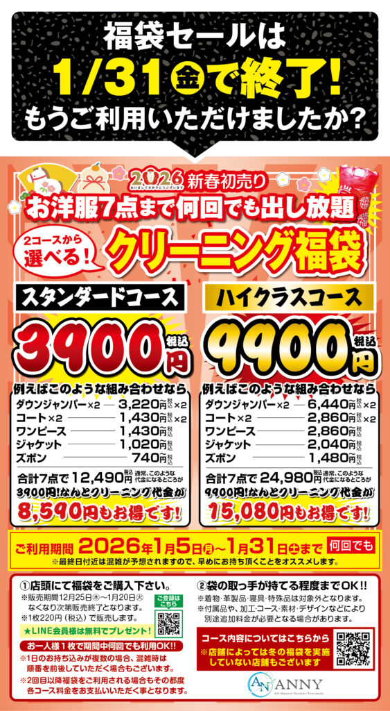 福袋セールは1/31(土)まで!あと9日で終了致します!